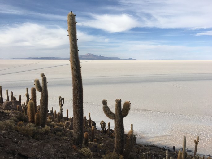 Isla Incahuasi: A hilly outpost in the midst of the white plains with plenty of big Trichocereus Cacti. We had a short hike followed by a beer.